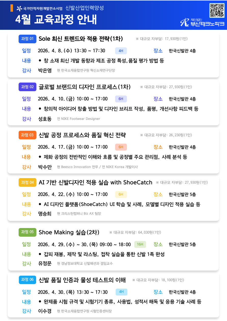 [교육] '26년도 신발산업인력양성 4월 교육과정 안내